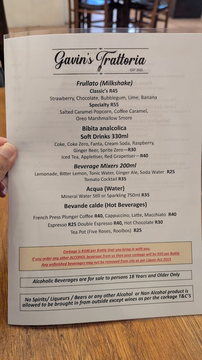 The menu at Gavin's Trattoria Agulhas Restaurant offers a thoughtful selection of Italian-inspired dishes that balance fresh local seafood with comforting classics. It's the kind of menu that invites you to linger over a relaxed lunch or settle in for an easygoing dinner, whether you're enjoying a casual bite or a more substantial meal.